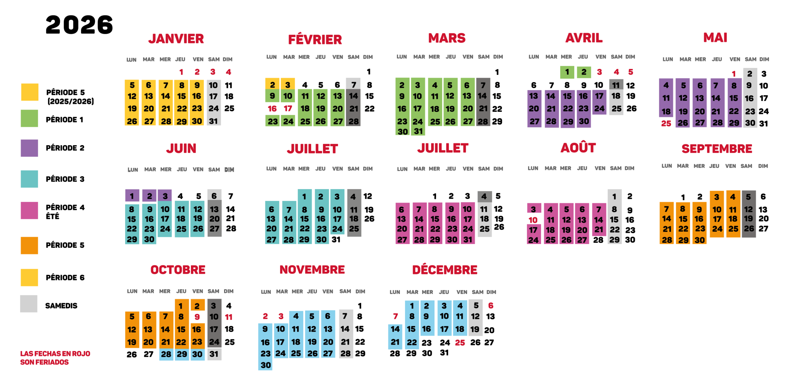 - Cada periodo de clase tiene una duración de 9 semanas.